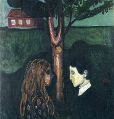فردی غریبه، موهوم و ناشناخته وارد میهمانی شده و چنان سردش است که خودش را فوراً به آتش شومینه رسانده و منتظر است تا خون تنش گرم شود. او که پشت به میهمانها ایستاده است و دارد از گرمای مطبوع آتش لذت میبرد، ناخواسته، صحبتهای دیگران را میشنود؛ بحثی گنگ دربارهٔ یک زن و دو مرد در جریان است که غریبه نیمچرخی میزند تا وارد فضای گفتوگوی آنها شود. غریبه چشم میگرداند تا آنها را پیدا کند و ناگهان، قهرمان داستان، با چهرهای آراسته ظاهر میشود: